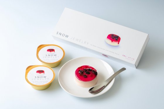 SNOW JEWELRYは、北海道産クリームチーズとハスカップを使用した、北海道のお土産として開発した新しいレアチーズケーキです。