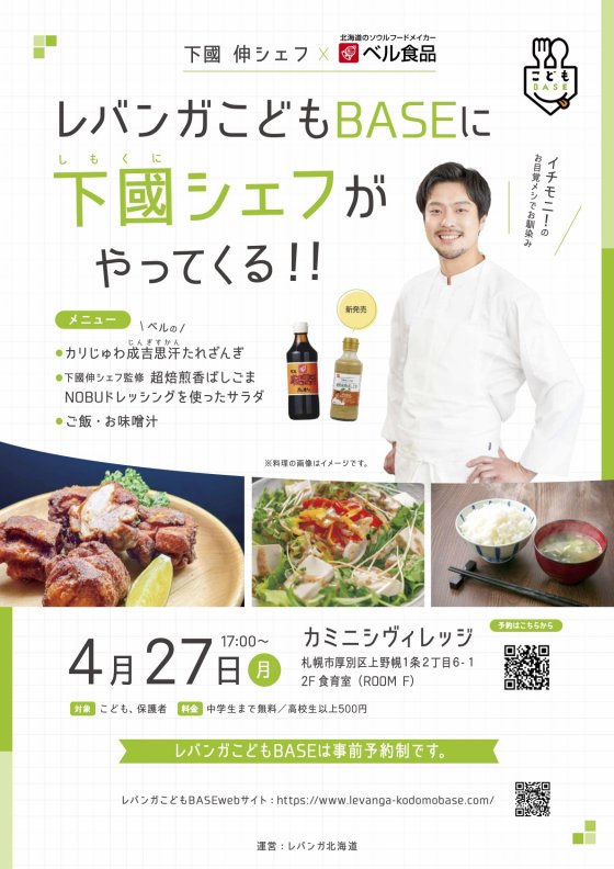 4/27、レバンガ北海道運営の子ども食堂で下國伸シェフと食育プログラムを実施